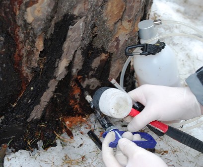 Служба СЭС по уничтожению короеда-типографа в Махачкале.